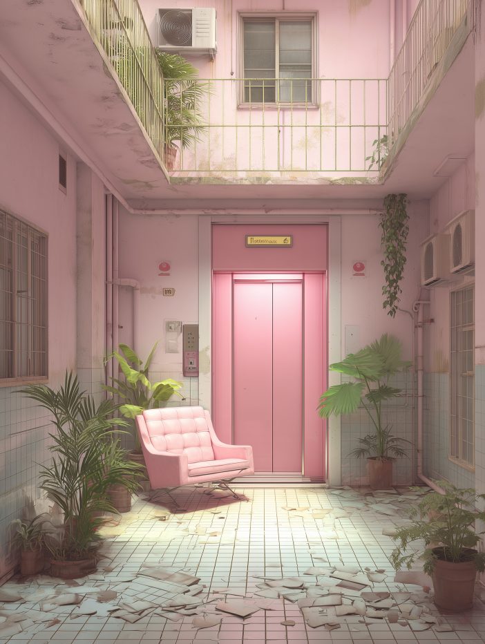 Sofa, plants and elevator still hold the scent of life.